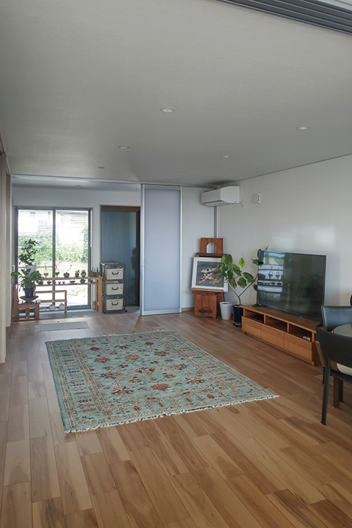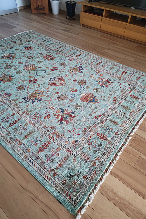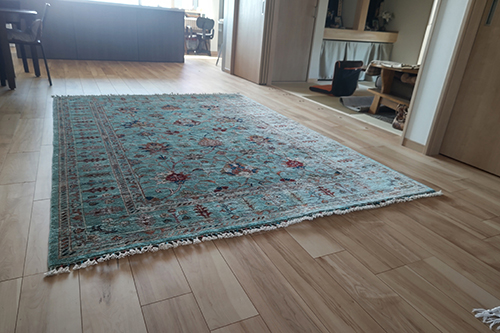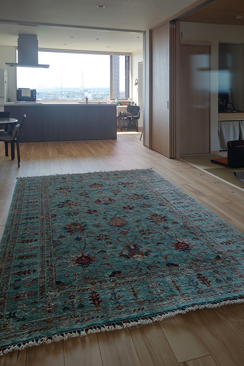 スッキリとしたモダンなお部屋にサラッと敷かれた一枚がとても映えます。
