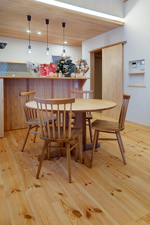 木の風合いが味わえる板座がご希望でナチュラルな空間でありながらも、とても映えるダイニングになりました。