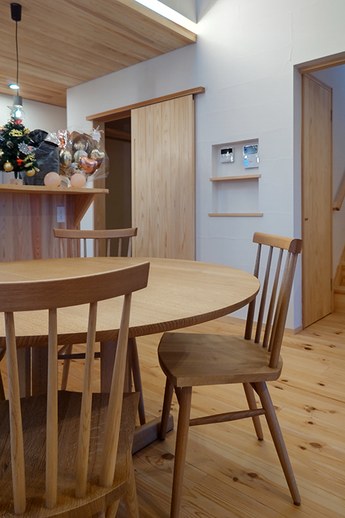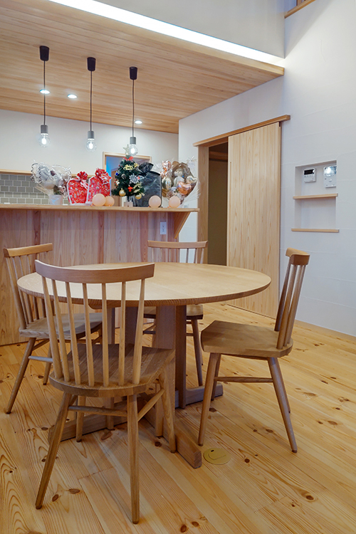 当初より丸テーブルをご希望され、店頭でさまざまなデザインのラウンドテーブルをご覧いただき選んでいただきました。