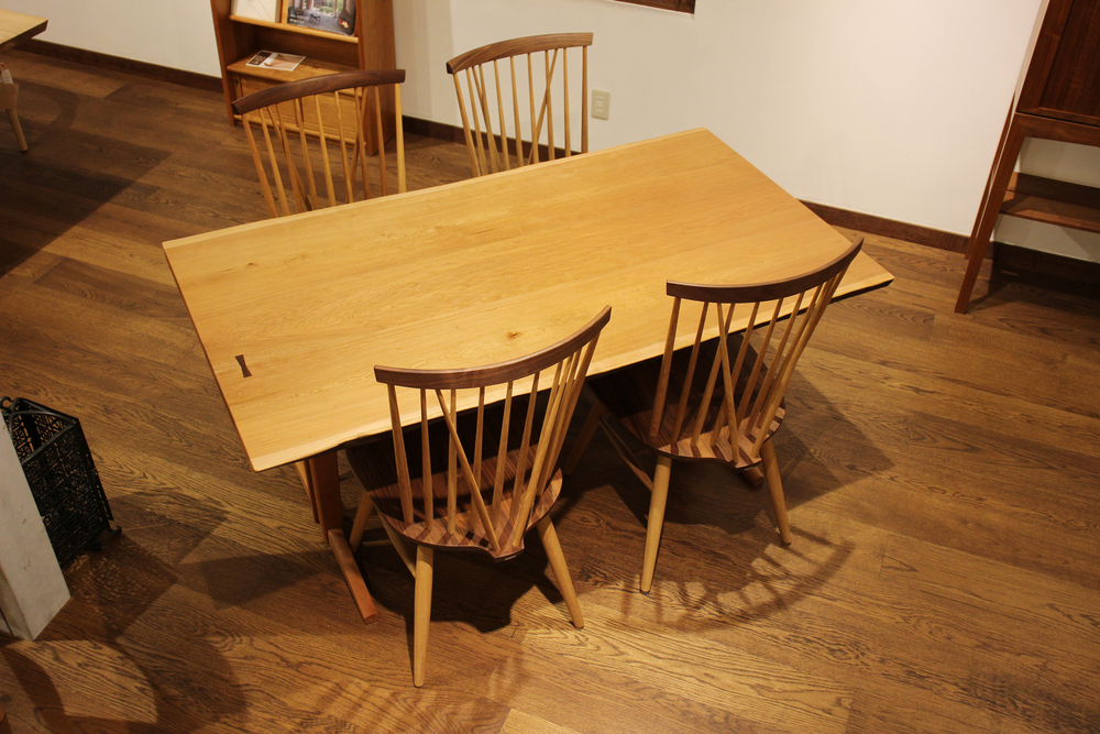北海道産タモ 1600 曲線ハギダイニングテーブル