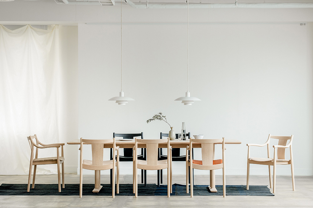 まるで彫刻作品のような存在感の CHORUSチェアの美しい佇まいは、手仕事の難しさを物語たります。