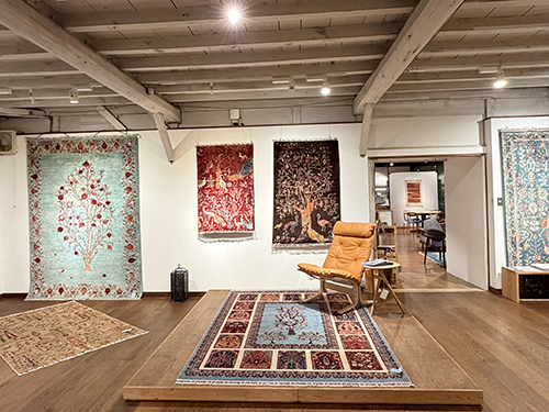 素敵な絨毯なので、ご覧いただけるよう壁にかけての展示ですが、