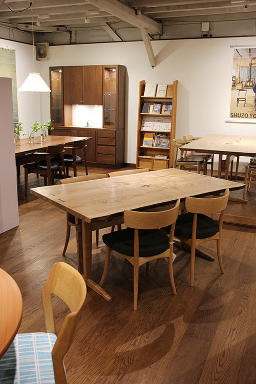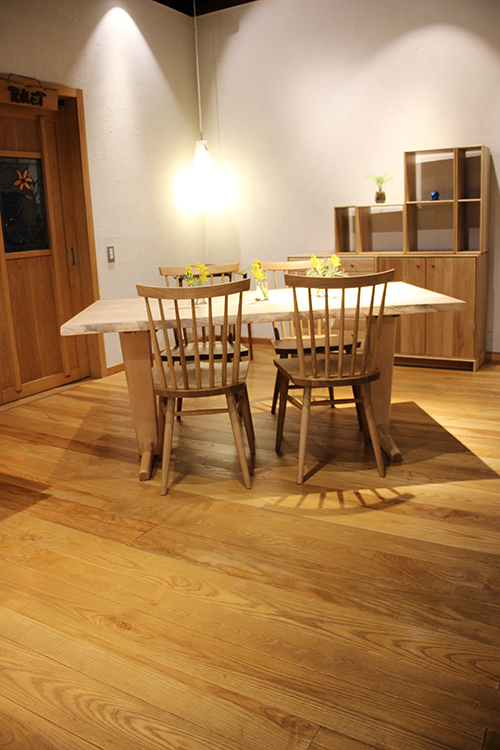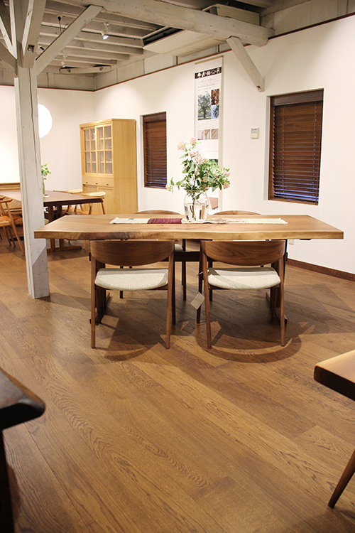 せっかくだから、自慢の無垢材テーブルを取り揃える万寿実のラインナップを一堂にご紹介。