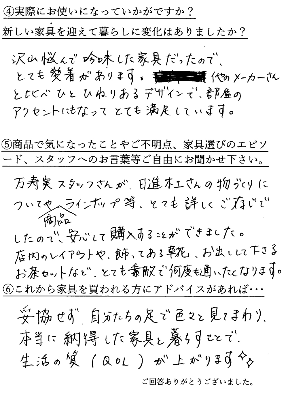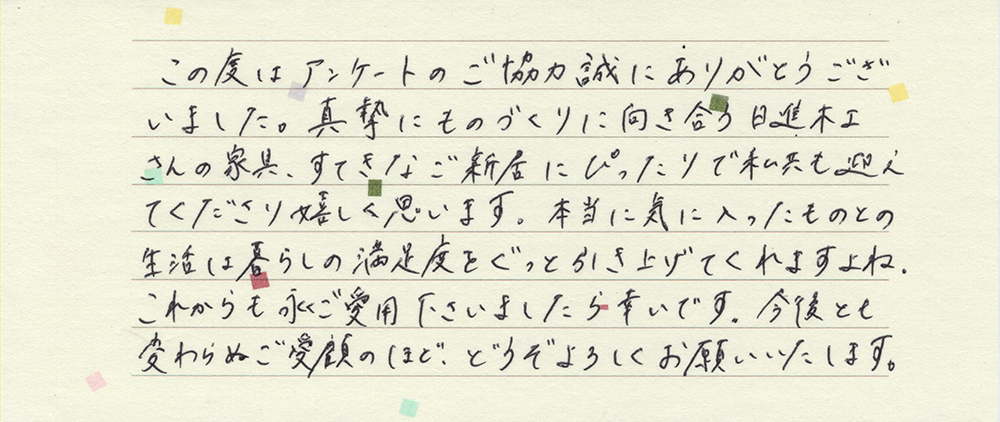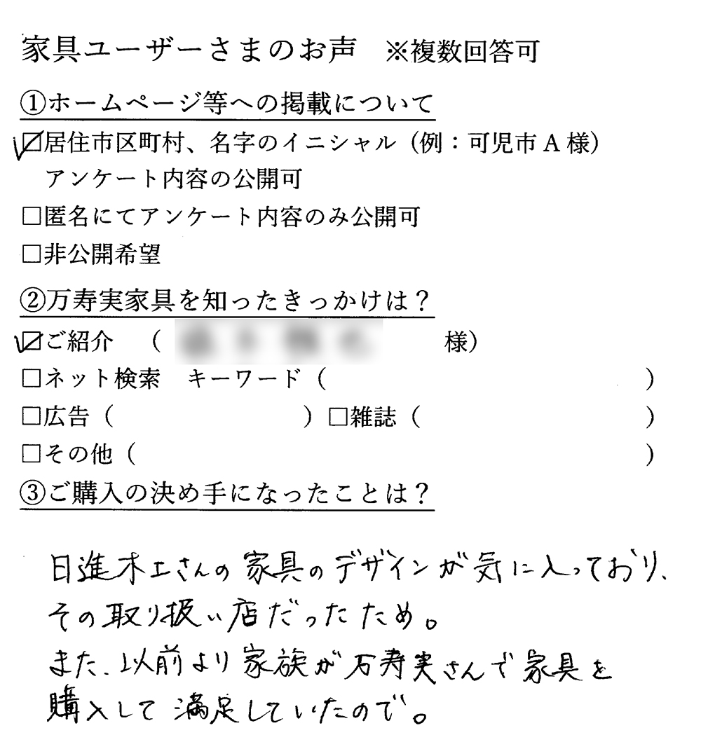 家具ユーザー様の声 ~ダイニング~ 家具ユーザー様の声 ~リビング~ たくさん悩んで吟味した家具なのでとても愛着があります 岐阜県可児市 U様より <ご愛用の家具> ・ダイニングチェア:SCOP ・ソファ:SCOP ・イージーチェア&オットマン:GROW スタッフより U様の納品事例はこちら ダイニング / リビング 一覧に戻る