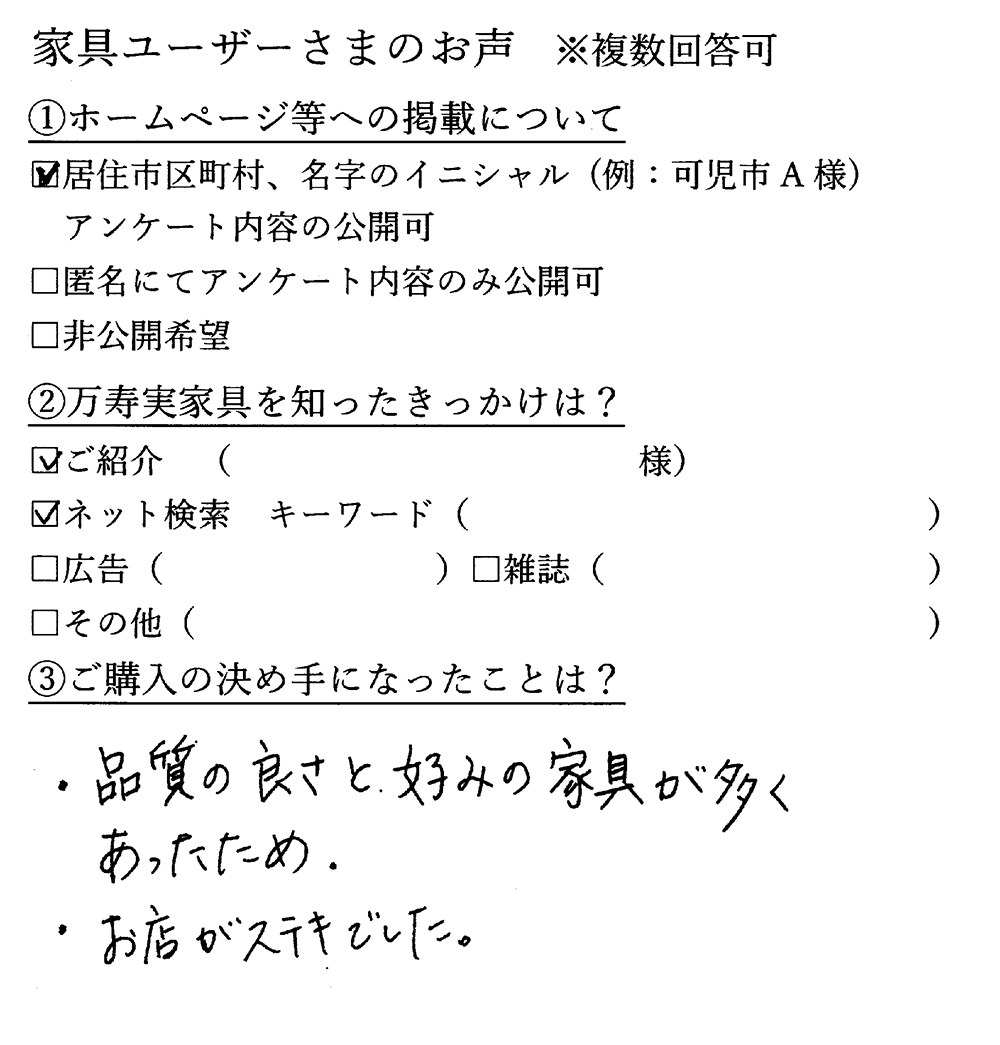 家具ユーザー様の声 ~リビング~