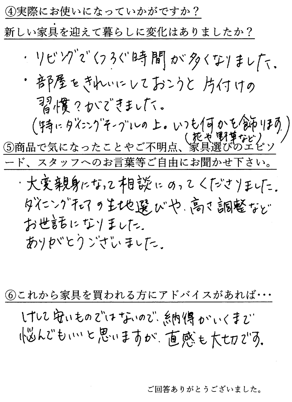 家具ユーザー様の声 ~ダイニング~